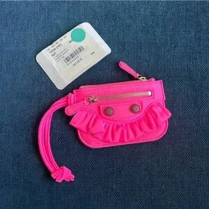 Balenciaga Hot Neon Pink Coin Pouch / Purse with Ruffles - NWT! Spandex - Violet