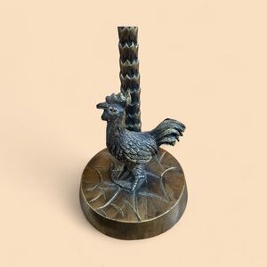 Illuminate your space with this charming vintage rooster table lamp. Featuring an amber glass shade, it adds a warm glow to any room. Perfect for adding a touch of rustic elegance to your home decor.