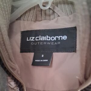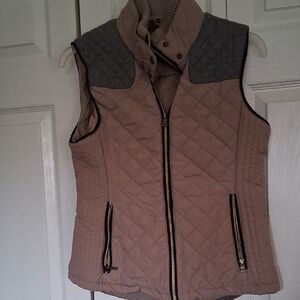 Liz Claiborne Quilted Beige Vest with Charcoal Details