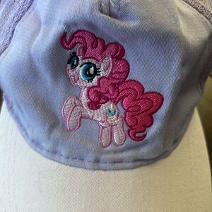 Used, good condition. Girls my little pony cap. Mesh. Snapback closure. Fits a child. Light pink brim. Rest of cap is lavender purple in color.