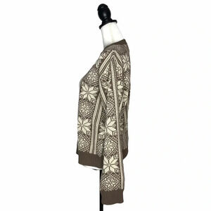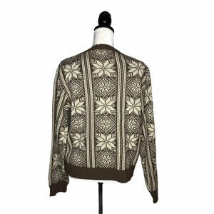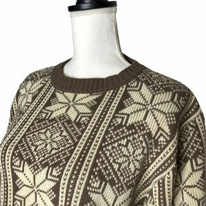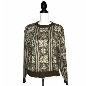Vintage 1980s Steep Slopes Brown Cream Nordic Snowflake Ski Lodge Sweater