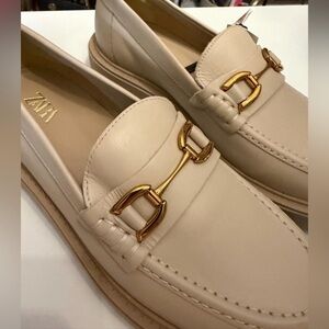 Zara Cream Loafers with Gold Accent