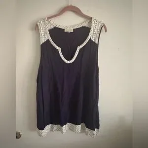Aesthetic retro ModCloth sleeveless top white polka dot trim. Plus size 3X