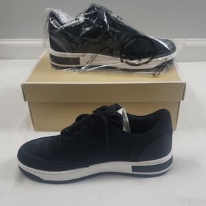 Stylish navy and white athletic shoes. Comfortable and versatile design. Never been worn. I took the right shoe out of the plastic for pictures. The box is included.