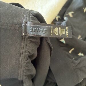 Comfortable black pajama set. Features a fun and playful print. Ideal for a cozy night's sleep.