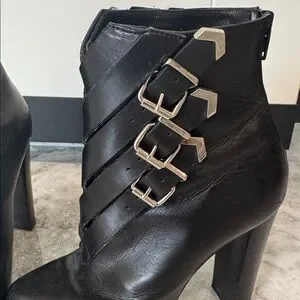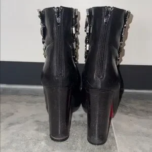 Step out in style and make a statement with these chic black Louboutin leather ankle boots.