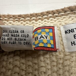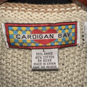 This vintage Cardigan Bay hand-knitted button front sweater in size Large is perfect for the fall harvest season. Made from a blend of Ramie and Cotton, this multicolor sweater features a long sleeve and a cozy knit fabric. The accents of buttons add a touch of charm, making it a stylish and comfortable choice for women. The sweater's theme of fall, thanksgiving, and outdoor activities such as pumpkin picking adds a nostalgic touch to the retro style of the piece.