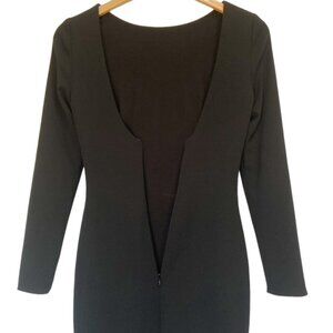 Dress the Population black body-hugging dress cut with a high neckline to counter the revealing scoop back. Back zipper closure and back slit. Perfect little black dress to wear for any occasion. Classy and sexy. Excellent condition. Please see pictures for more details and measurements.