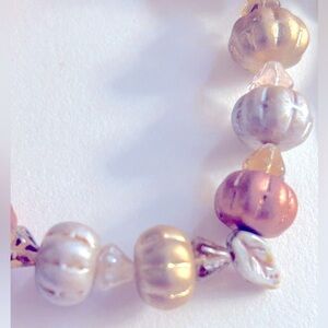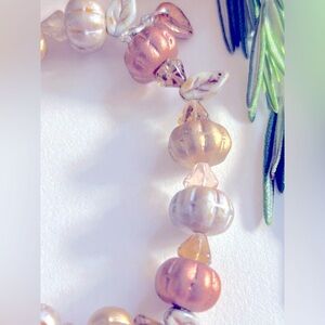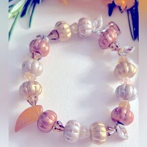 NWOT Bracelet, Czech Glass Pumpkin with Stems & Autumn Leaf shape beads, with contrasting embossed leaf veins. Metallic beads in copper, silver & gold. Smoky Leaf dangling charm. Stretchy, one of a kind, artisan! One size fits most (Osfm). Medium, but still Comfortable on my 8” wrist. Great for Fall, Thanksgiving!