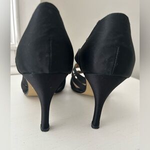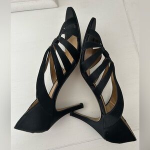 Chic black heels with stylish straps. Ideal for holiday wear and parties or any event. Comfortable and fashionable. Good condition. Approximately 3.5” heel