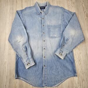 Lands End Shirt Mens Large Blue Denim Long Sleeve Button Up Casual Western 90s
