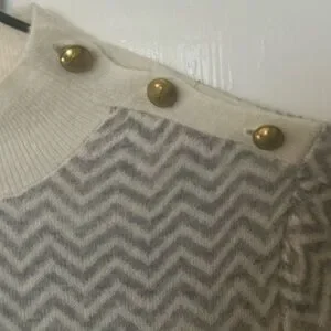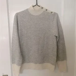 J.Crew Herringbone Chevron Grey & White Print Sweater Size Small FLAWED
