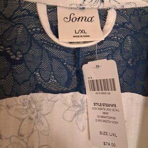 NEW Soma Cool Nights Floral Lace Trim Kimono Short Robe Sz L/XL NWT