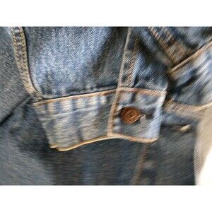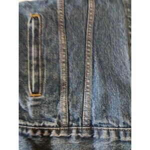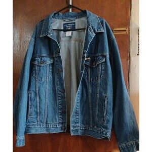 The Levi Strauss Signature 1873 Men's Button-Up Denim Trucker Jean Jacket in Blue XL is a classic mid-length jacket perfect for casual and travel occasions. Made of cotton denim with a spread collar and button closure, this jacket features classic accents like button and logo detailing. It is ideal for the summer, fall, and spring seasons and has a regular fit for comfortable wear. With its timeless style and quality construction from the trusted Levi's brand, this jacket is a versatile and stylish addition to any man's wardrobe. As with any used clothing item, expect signs of wear and tear. As you can see by photos it's in great condition.