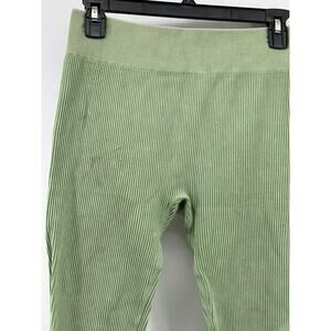 UNBRANDED Women's Green Ribbed High-Rise Pull-On Compression Leggings SZ M