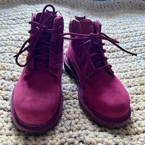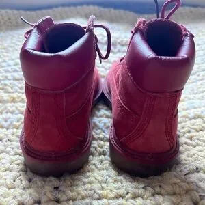 Fall is quickly approaching and this is the bootie to have. Rugged, durable and meant to last. Timberland quality and construction these will easily carry your little one through the winter snowy season. Anti slip and waterproof make this a perfect everyday solid boot. Super cute muted cherry red is neutral and fun fir the upcoming holiday season. Very minimal marking and sole is in excellent gently pre worn condition. The growth spurt is your gain. Help their feet be happy.