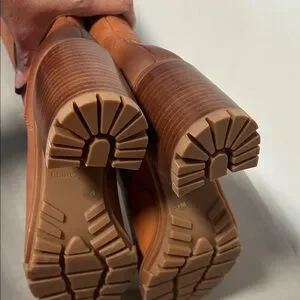 Elegant brown heeled boots. Sleek design. Perfect for any occasion.