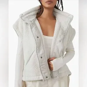 Stay cozy and stylish with this women's white sherpa vest. Perfect for layering, this vest offers warmth and comfort. Ideal for casual outings or a chic addition to your wardrobe.