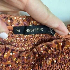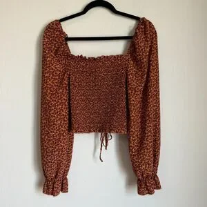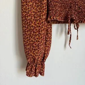 Moody Fall Sz Med Boho Floral Smocked Peasant Balloon Sleeve Crop Top Festival