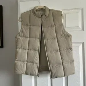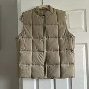 Chic quilted vest by J. Crew. Ideal for layering. Light tan color. Size large excellent condition