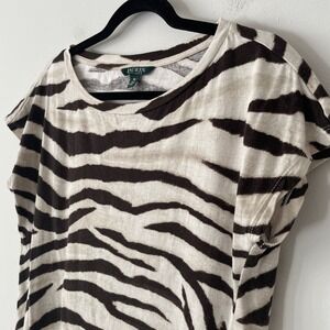 Ralph Lauren Animal Zebra Print Top Size M Stretch Knit Old Money Western Boho