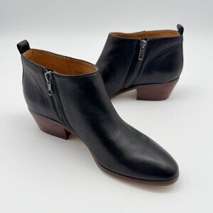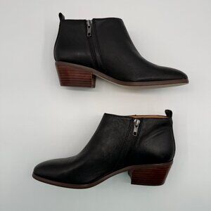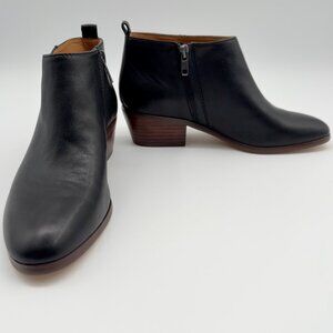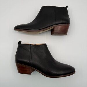 J.Crew Factory Women’s 8.5 Sawyer Black Leather Ankle Boots Stacked Heel NWOB
