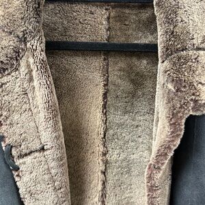 Stay warm and stylish with this luxurious shearling coat. Featuring a classic black exterior with a cozy brown lining, this coat is perfect for any winter wardrobe.