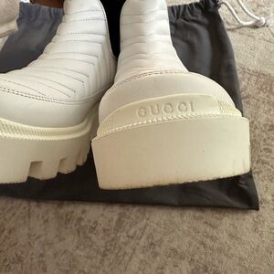 GUCCI Calfskin Nappa Matelasse Frances Chelsea Boots 38 Great White Black