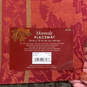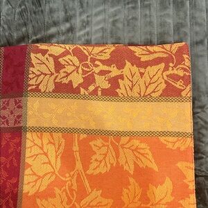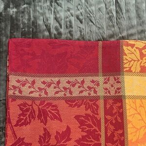 Vibrant placemat with an autumn leaf design. Features red, orange, and yellow colors.