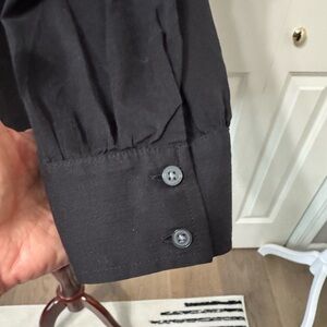 This "NEW WITH TAGS" black blouse from LOFT is 100% cotton features a relaxed fit with long button sleeves and a peasant collar, offering a sophisticated yet comfortable style. The lightweight fabric adds a touch of elegance, making it a versatile addition to any wardrobe. Perfect for all season wear.