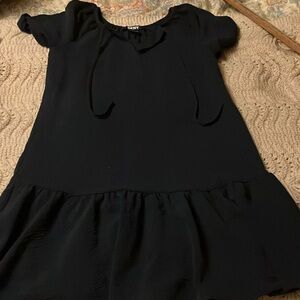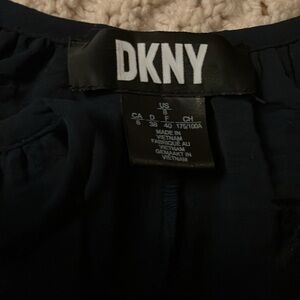 DKNY Navy Blue Dress with Puff Sleeves and ruffle hem S