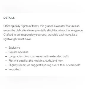 Garnet Hill Cashmere Blouson Sleeve Square Neck Pointelle Teal Sweater