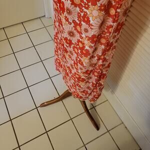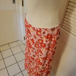 Forever 21 Large Red Floral Stretch A-Line Midi Skirt 60s Hippie Boho