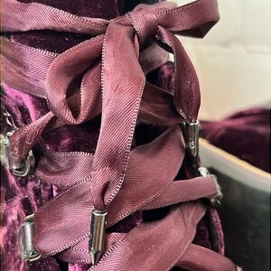 Elevate your style with these Sam Edelman Browan combat boots in a beautiful purple crushed velvet color. The boots feature a lace-up closure and a synthetic outsole for durability. The upper material is also made of velvet, giving these boots a luxurious feel.