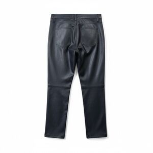 Sleek and modern Hudson Barbara High Rise Straight Pants in the shade Black Beauty, size 28. Designed with a flattering high-rise waist, slim-straight leg, and chic front ankle slits for an elevated, fashion-forward silhouette. Crafted from a coated, leather-look stretch fabric that’s both comfortable and polished.