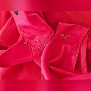 this is a very simple & classy dress. The fabric is high quality, a slight stretch and is fully lined. Nice slit detail on the rear bottom hem and a rear hidden zipper enclosure. Dress is in good used condition, the stitch at the very bottom of the zipper is loose so it would just need a quick tighten with needle and small piece of thread.