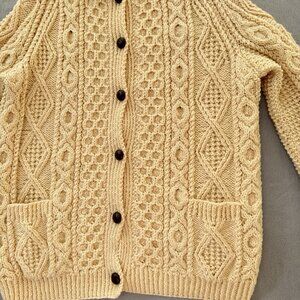 Vintage Irish Wool Sweater Hand Knit Cardigan Collar Ivory Chunky Fisherman