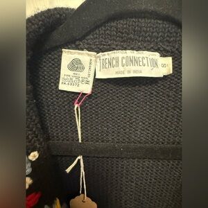 French Connection Black Cardigan with Colorful Embroidery. Size small