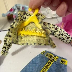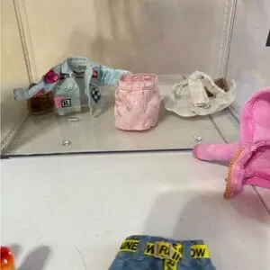 Tons of clothes, outfits, dresses, tops and bottoms, shirts and pants, at least 7 pairs of shoes!