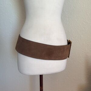 Vintage Chic brown suede belt with a sleek gold buckle. Ideal for enhancing any ensemble.
