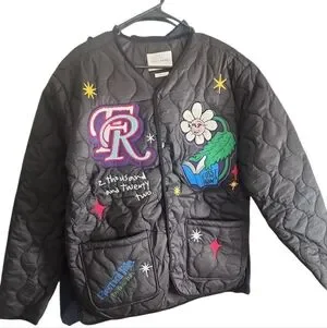 Never worn. New withput tag. FIRST ROW DENIM Sunshine Quilted Liner Jacket Multi-Patch Black L Street