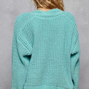 Chic aqua cardigan by POL. Ideal for layering. Adds vibrant flair.