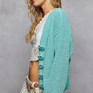 023 💕 POL The Cloud Drape 1 Aqua Knit Cardigan