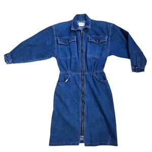 Vintage 80s 19th Avenue Denim Dress Full Zip Size 12