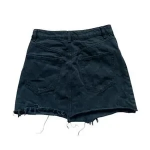 Zara Black Mini Denim Skirt with button up fly with destressed hem Cotton