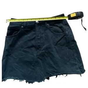 Zara Womens/Teen Black Mini Denim Skirt Button up fly Destressed Hem Size Medium