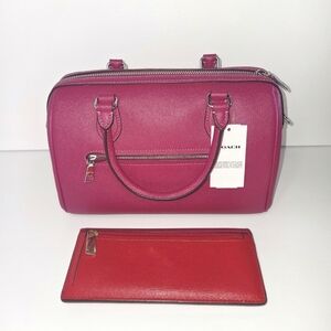 Stylish Coach satchel with matching wallet. Bold fuchsia color. Ideal for any occasion.
