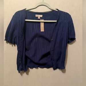 NWT J. Crew Pointelle short-sleeve V-neck cardigan ultra-fine cotton Navy Small