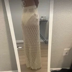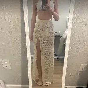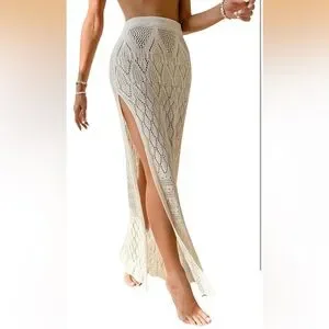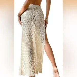 Chic crochet maxi skirt in cream. Perfect for summer outings.