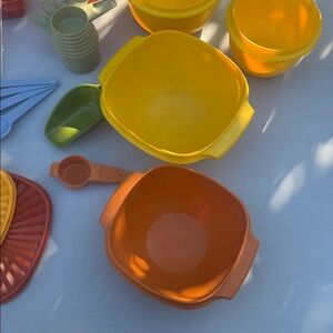 Vintage 1970s Tupperware Kitchen Set in Orange Green Red and Yellow